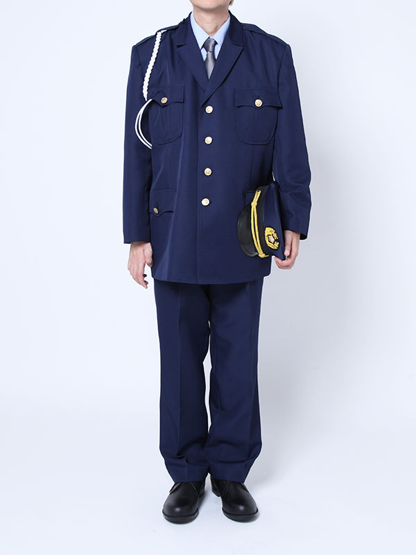 ネイビーの警察官ジャケットとパンツ、中に長袖ネイビーシャツを合わせた警察官コーディネート例です。
