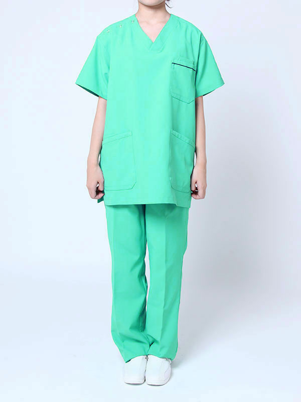 グリーンの医療着シャツとパンツの手術着コーディネート例です。