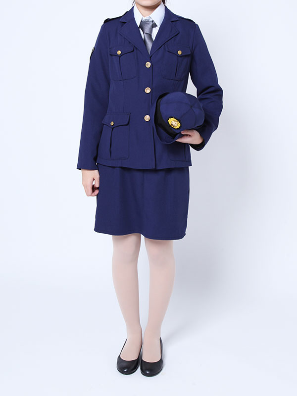 ネイビーの警察官ジャケットとスカートの警察官コーディネート例です。