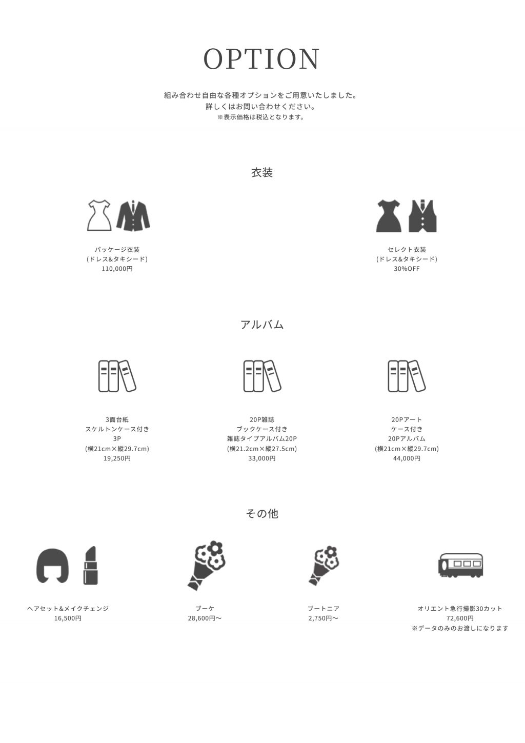 スタジオ・ロケーションフォトプランスタンダードで人気の高いスタジオや、開放感のあるロケーションでの撮影ができるプランをご用意。結婚式当日の衣装と雰囲気を変えて、フォトジェニックなお写真が残せます。
