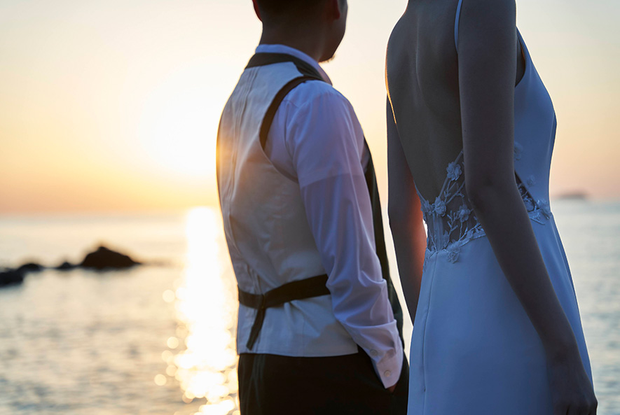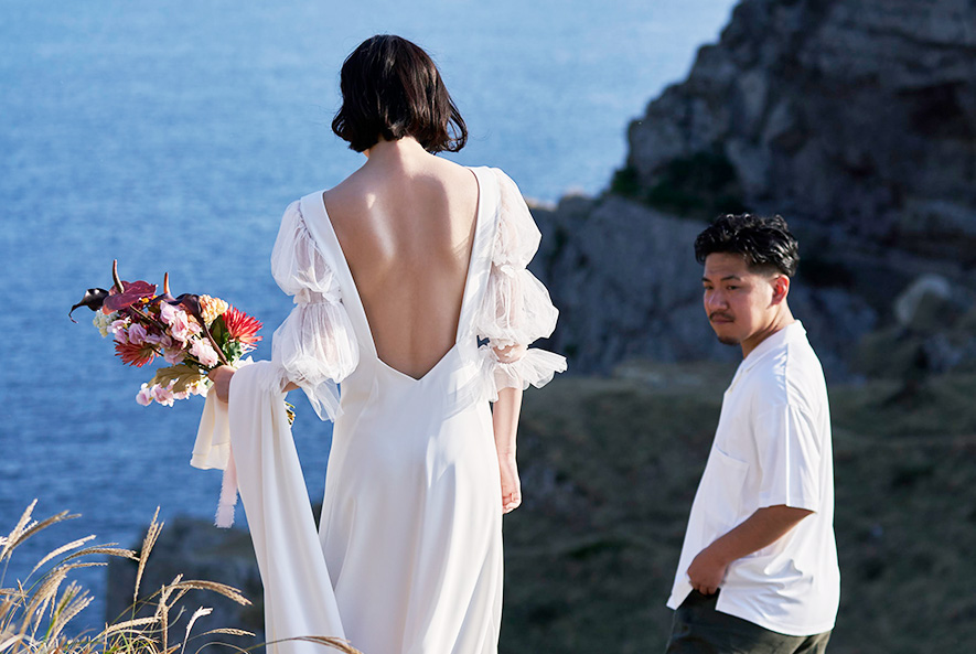 太古から繰り広げられる海と空と光のシアター館内は、アートを感じる拘りの空間、そして部屋のベッドからは水平線に包まれるかのような、海に通じる風景が広がり大自然と静寂と光に満ち溢れる唯一無二のラグジュアリーな場所「五島リトリート ray」に宿泊し、二人の結婚という大切な時をウエディングフォトと旅という形で、印象的に残して欲しい余韻の残るウエディングフォト【Wedding photo trip / 五島リトリート ray × クリオマリアージュ】
